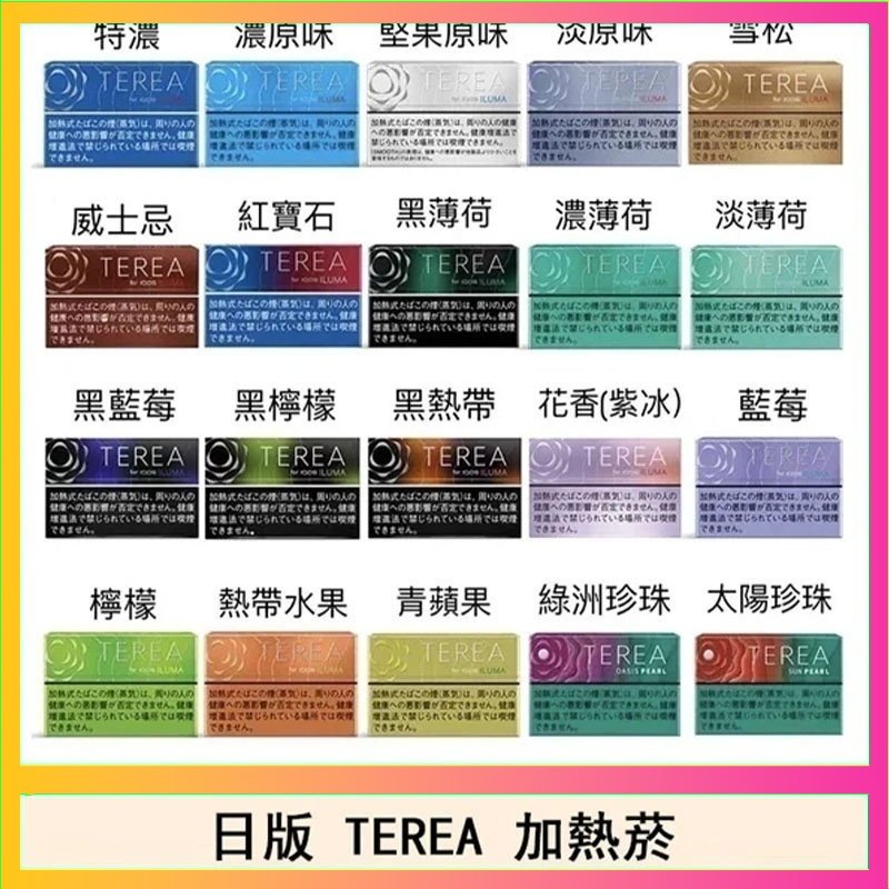 TEREA 是一個加熱菸的品牌,專門為 IQOS ILUMA 加熱設備設計。它使用環狀加熱技術,並在菸彈內含有加熱片,以提供更均勻的加熱效果,且菸彈底部密合,減少了菸屑和焦油的問題。TEREA 的菸彈有多種口味,包括原味、薄荷、水果爆珠等。